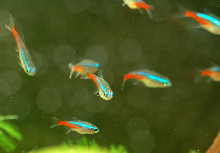 Volíme menšie ryby, napríklad Paracheirodon innesi alebo Poecilia reticulata.